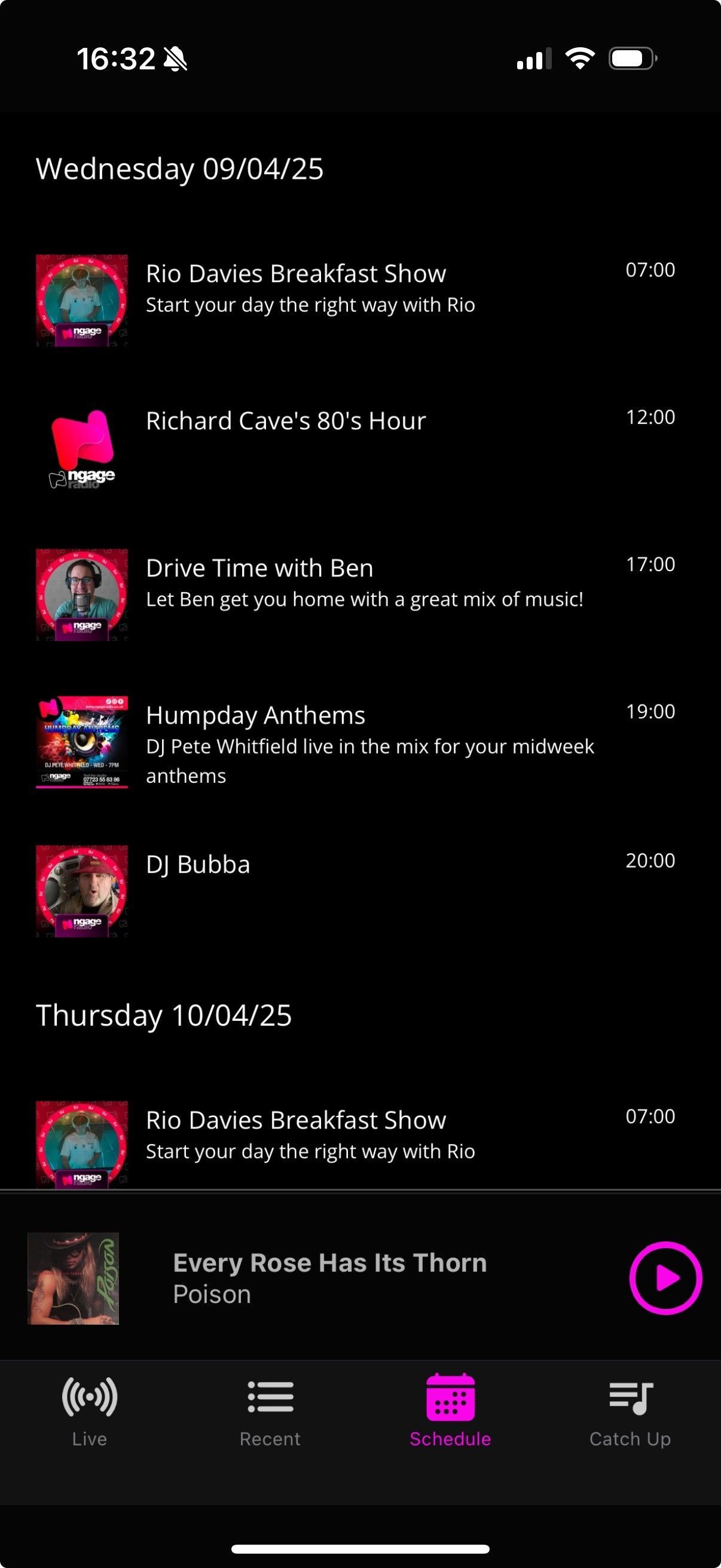 - Catch-up page for easy access to your MixCloud or Podbean uploads.