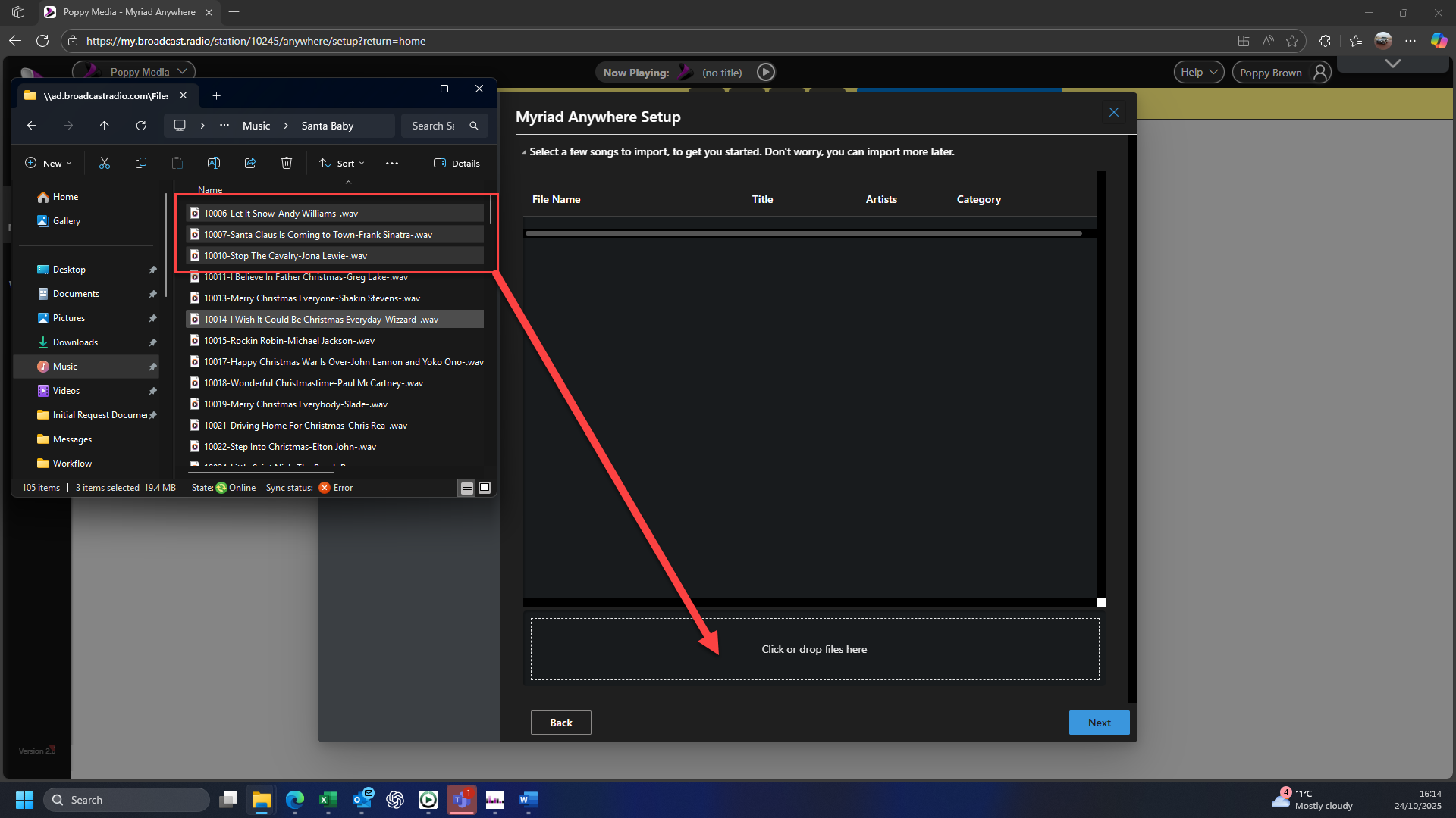 - Add your own content - start by add a few files to upload to your system. This is the option we want for Santa Baby Radio.