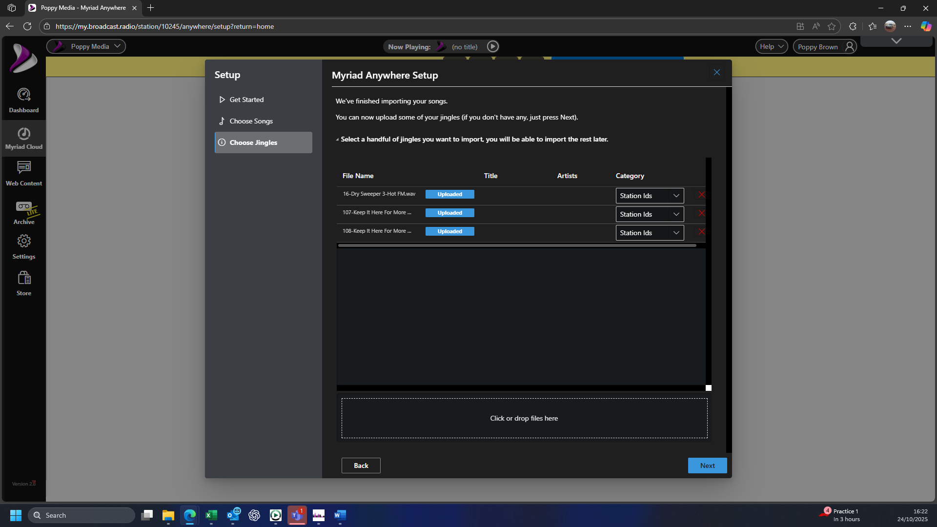 Once you have added a few Songs, click on the Next button. The files will take a few minutes to upload and import (depending on size and quantity.